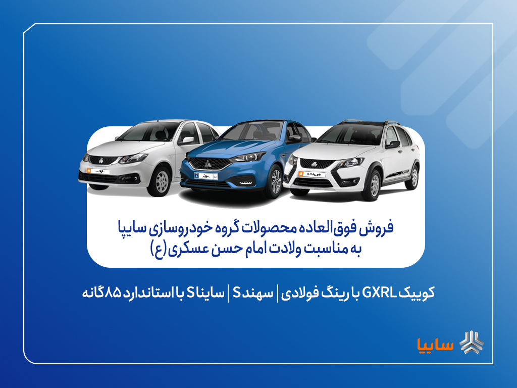 همزمان با فرارسیدن ولادت امام حسن عسکری(ع)، فروش فوقالعاده سه محصول پرمتقاضی گروه خودروسازی سایپا از امروز آغاز میشود.